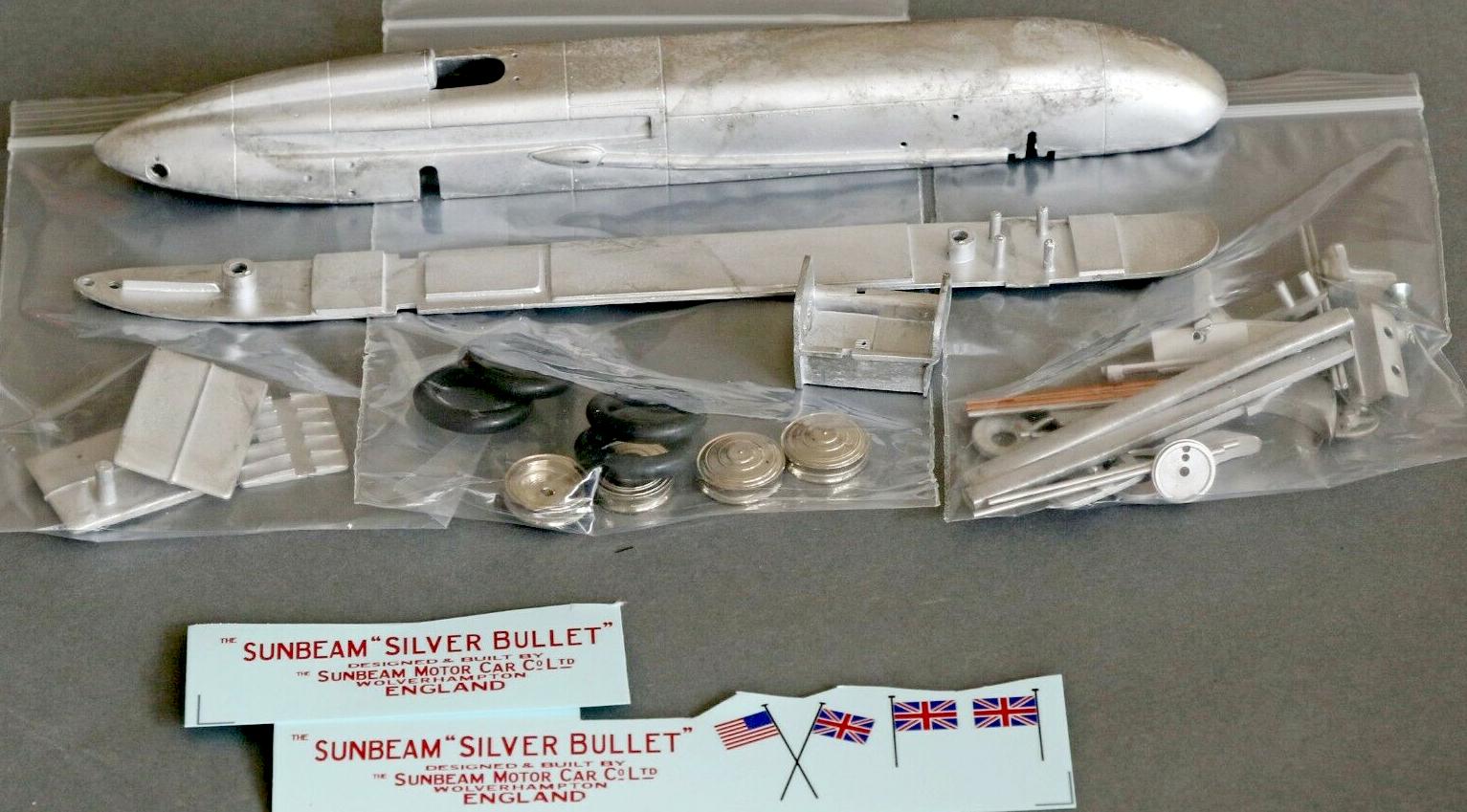 DIE CAST MODEL - Sunbeam's Silver Bullet as a 1:43 scale model kit and a very rare tinplate model.