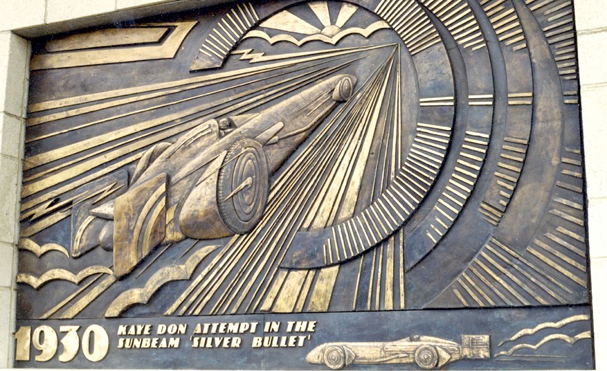 PLAQUE - Sunbeam Land Speed record attempts as cast bronze panel Artwork for St. John's Retail Park, at Wolverhampton.