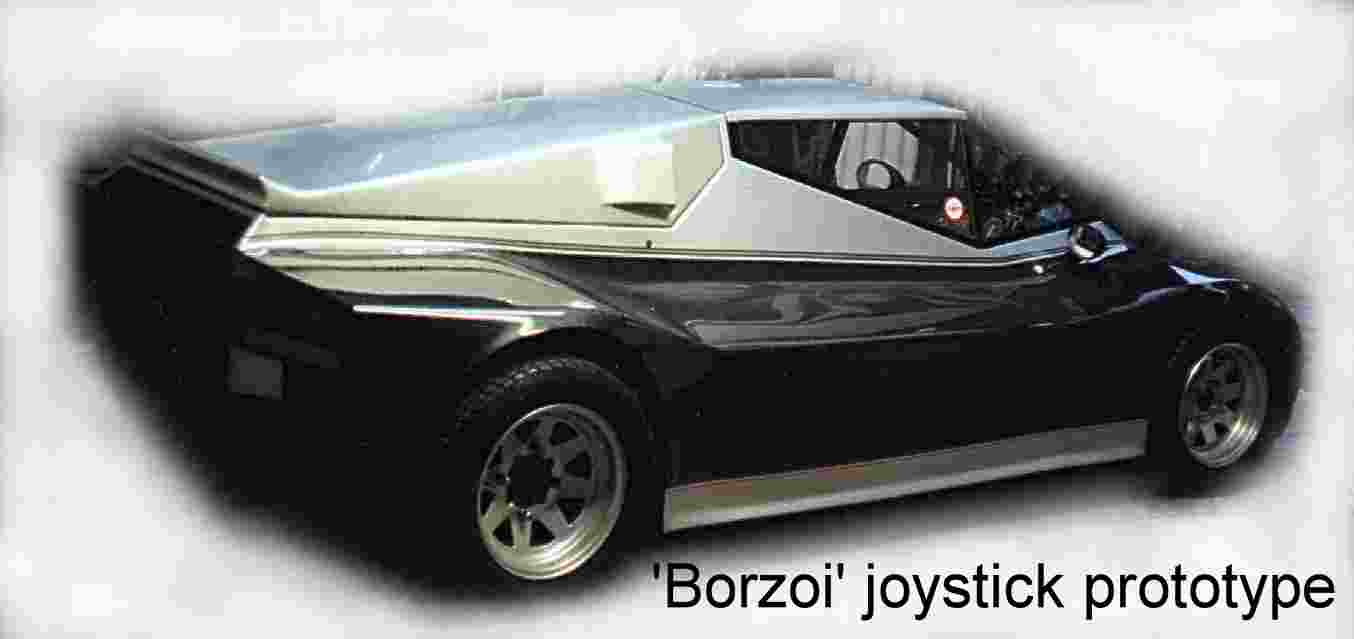 The car was used to demonstrate the ease with which one handed driving may be achieved. First appearing at the Bexhill 100 motor festival in 1990. Unlike the GM joystick cars of the sixties and Volvo joystick cars of the eighties, the Borzoi used a mechanical configuration, to comply with DOT safety regulations.