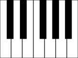The twelve notes of the Western musical scale are laid out with the lowest note on the left; the larger keys (for the seven "natural" notes of the C major scale: C, D, E, F, G, A, B) jut forward. Technically these keys are called Naturals. Because these keys are often coloured white on a keyboard, these are often called the white notes or white keys. The keys for the remaining five notes which are not part of the C major scale (namely C♯/D♭, D♯/E♭, F♯/G♭, G♯/A♭, A♯/B♭) are set back. The correct term for these keys is Accidentals or more often Sharps, or Flats. Because these keys are often coloured black, these notes are often called the black notes or black keys. The pattern repeats at the interval of an octave.