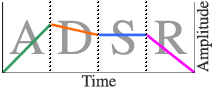 One of the most salient aspects of any sound is its amplitude envelope. This envelope determines whether the sound is percussive, like a snare drum, or persistent, like a violin string. Most often, this shaping of the sound's amplitude profile is realized with an "ADSR" (Attack Decay Sustain Release) envelope model applied to control oscillator volumes. Apart from Sustain, each of these stages is modeled by a change in volume (typically exponential).