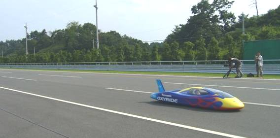 It’s tiny, but fast. At a test course in Shirosato town in Ibaraki prefecture (100 km northeast of Tokyo), student Takashi Sudo piloted the Racer to achieved an average speed of 105.95 km/h (65.5 mph) and a maximum speed of 122 km/h (75.8 mph)! And all this, on just 192 AA Oxyride batteries! We wonder if the car could have performed as well on NiMh batteries, such as that used in the current ou0right land speed record car: the Buckeye Bullet, built by students at Ohio State University in the USA. The BB topped an astonishing 300mph in one run.