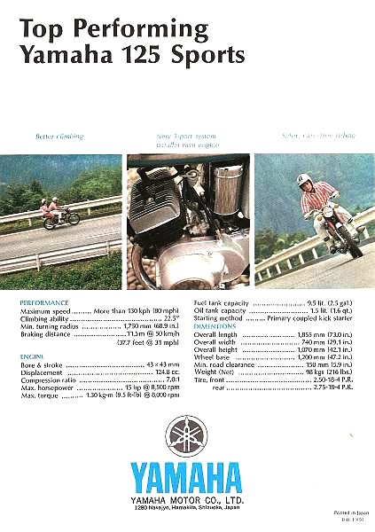 YAMAHA 125 & 250 cc MOTORCYCLES